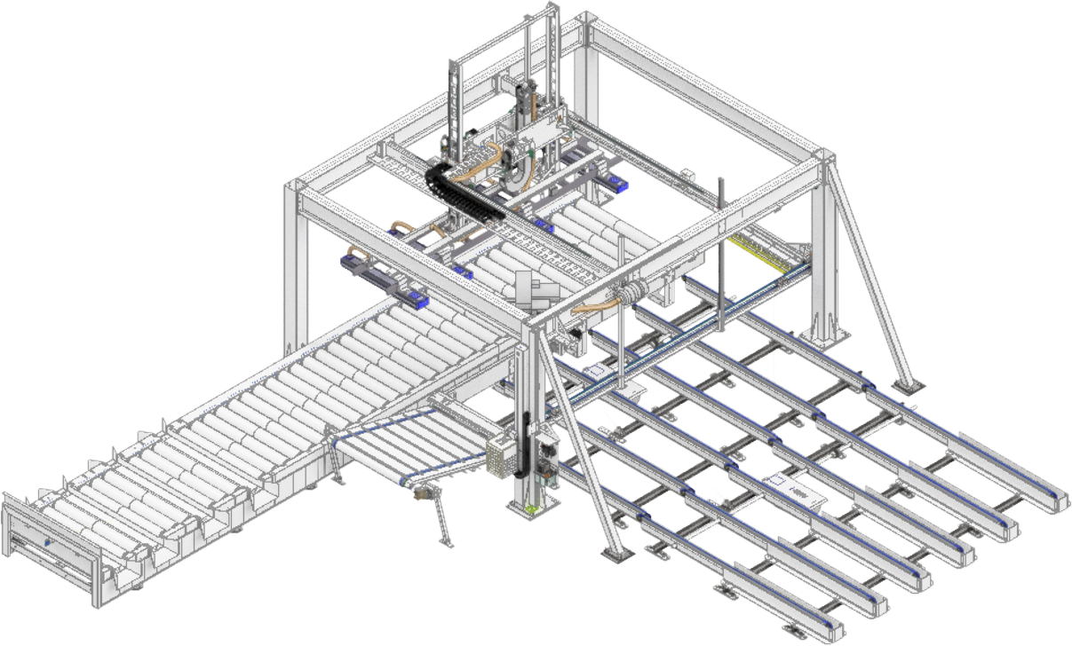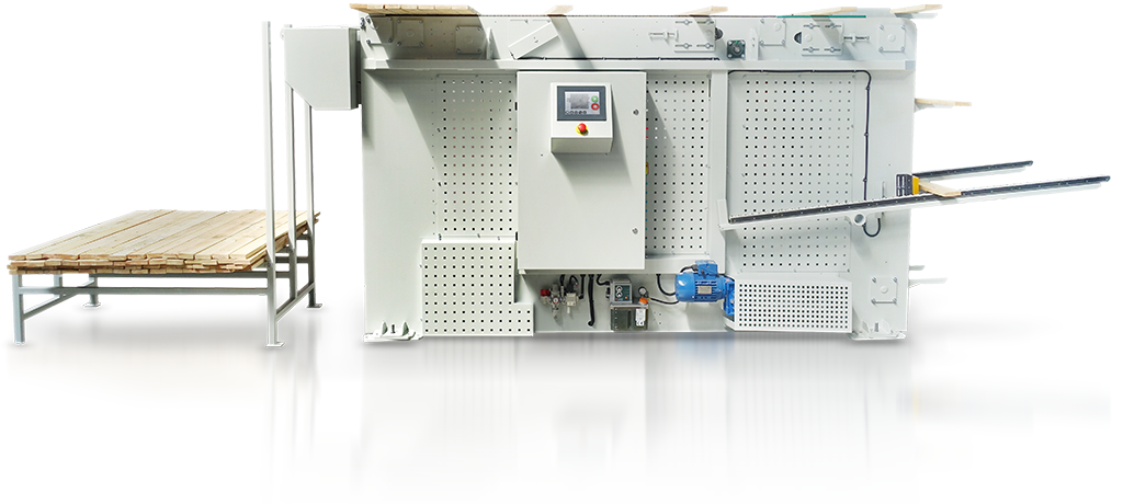 Una macchina con ampia funzionalità, che ti permetterà di scaricare e impilare rapidamente grandi quantità di legno. Il depalettizzatore pneumatico offre l’opzione di rimozione automatica dei listelli di separazione. Dotato di pinze pneumatiche resistenti alle intemperie, consente di lavorare anche sotto una tettoia. Per maggiori informazioni, contatta il nostro rappresentante.